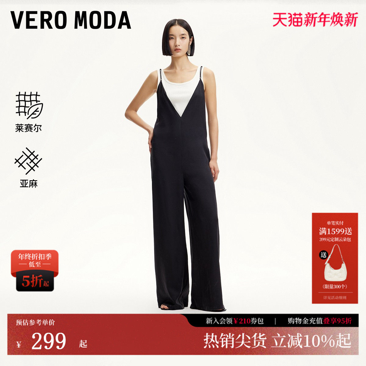 Vero Moda连体裤2025夏季新款V领吊带天丝莱赛尔亚麻阔腿显瘦休闲