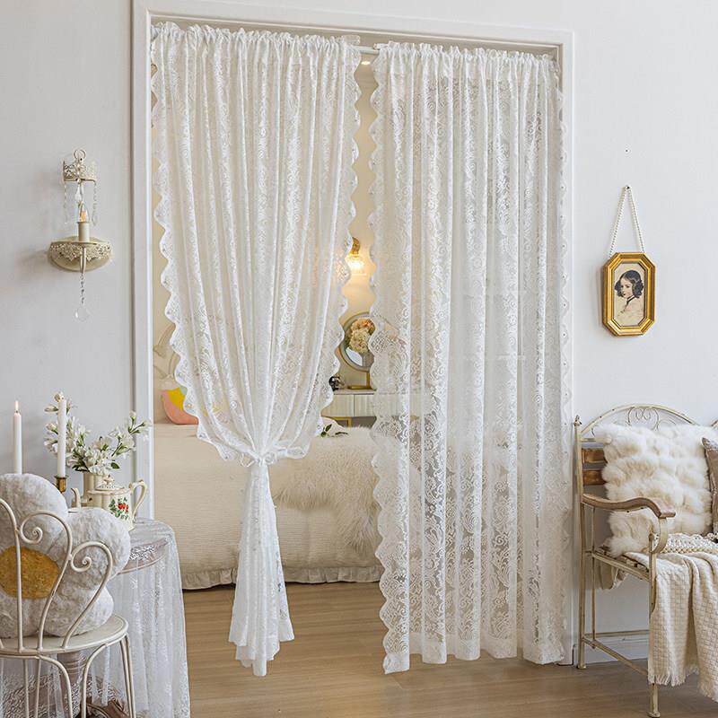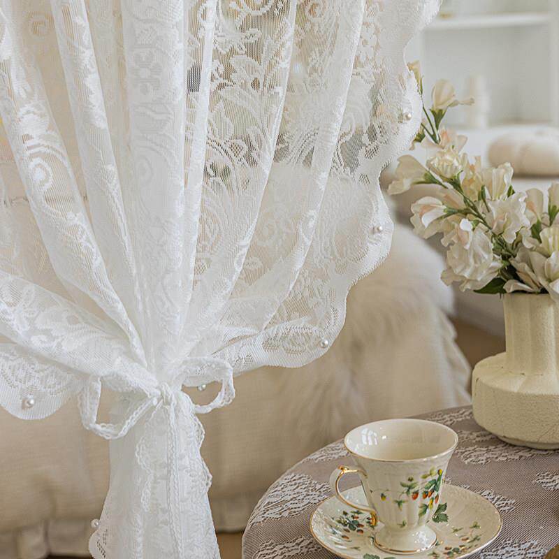 法式轻奢奶咖色蕾丝纱帘窗帘透光不透人卧室风高级感飘窗纱幔