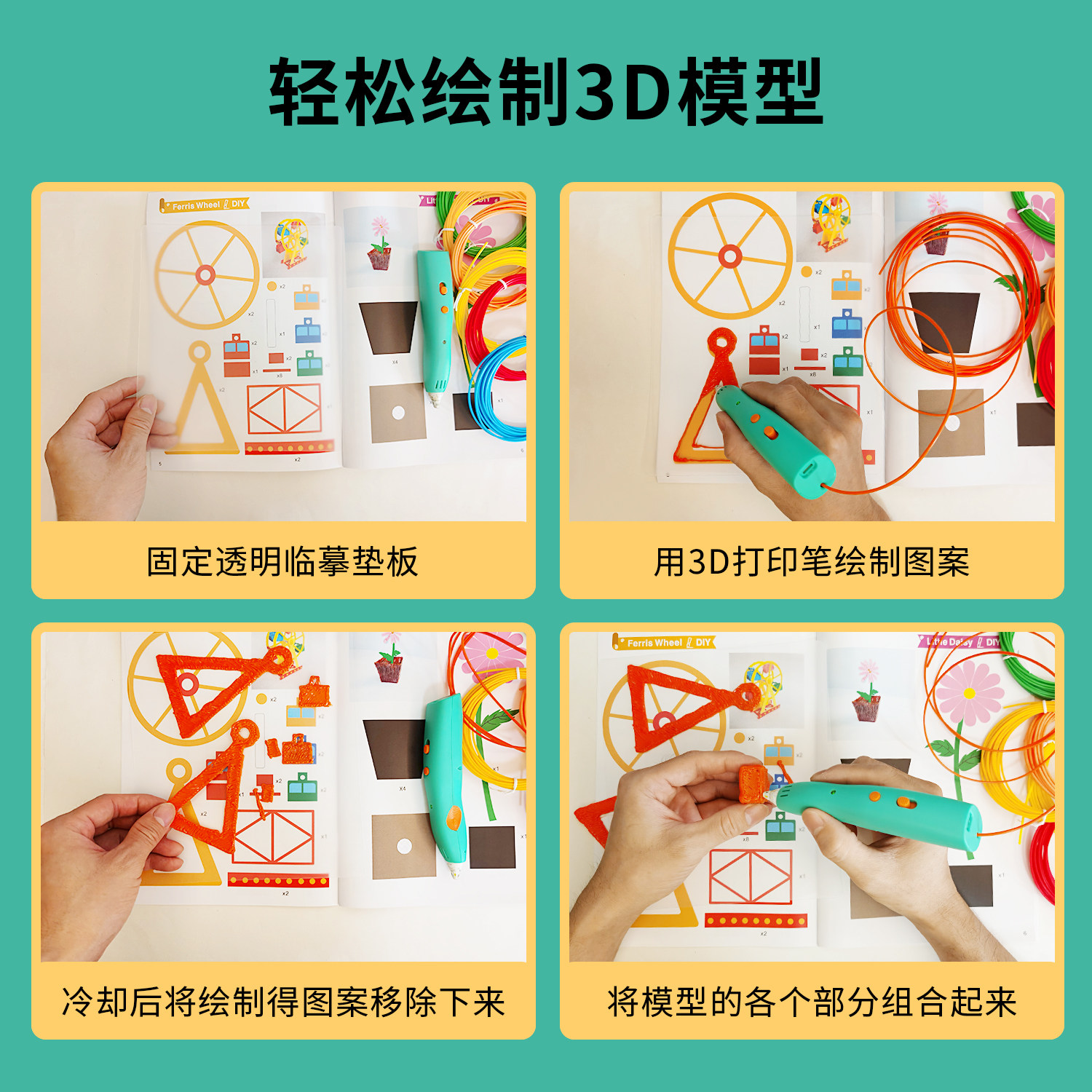 牧紫3d打印笔画册图纸 儿童临摹模板立体纸模绘图纸绘画手工教学