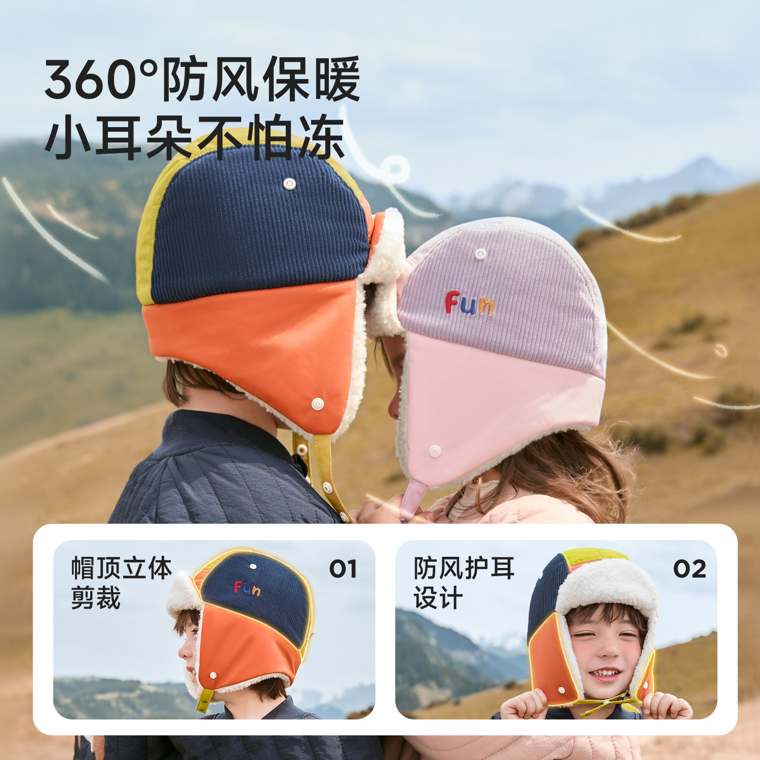 尼多熊2025儿童帽子男童雷锋帽加绒女护耳帽防风宝宝飞行员帽秋冬