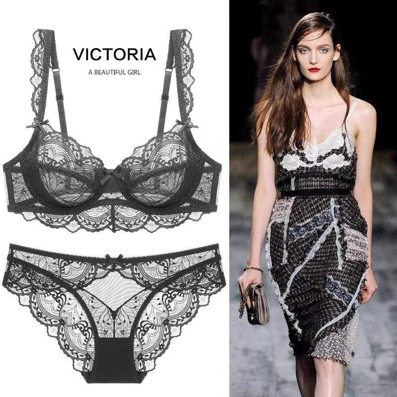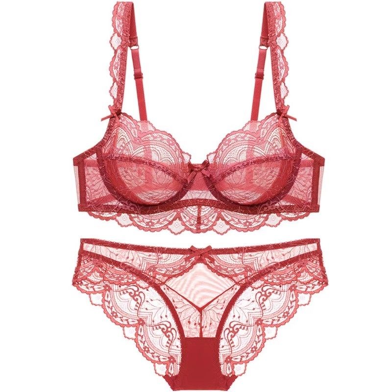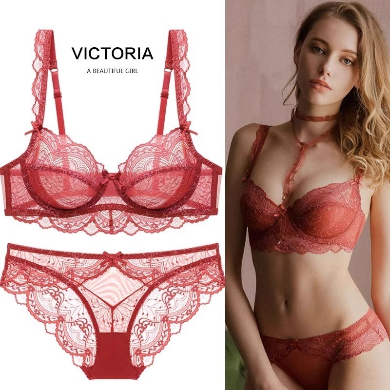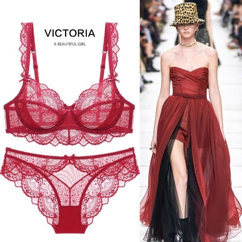 维多利亚文胸套装法式超薄性感透气蕾丝大胸显小红色本命年女内衣