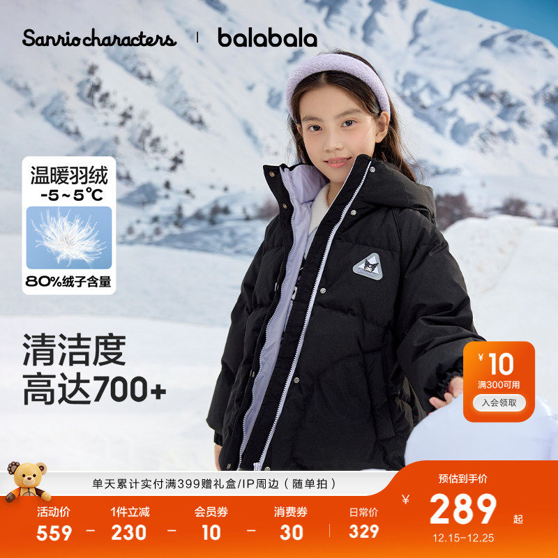 【库洛米IP】巴拉巴拉童装儿童羽绒服冬装外套女上衣加厚保暖流行