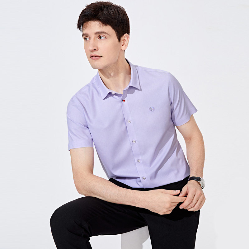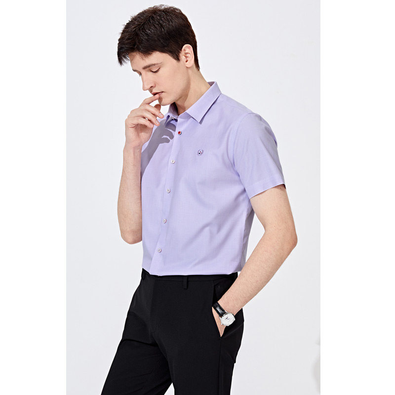 [免烫易打理]Navigare意大利小帆船男士短袖衬衫夏季紫色打底衬衣