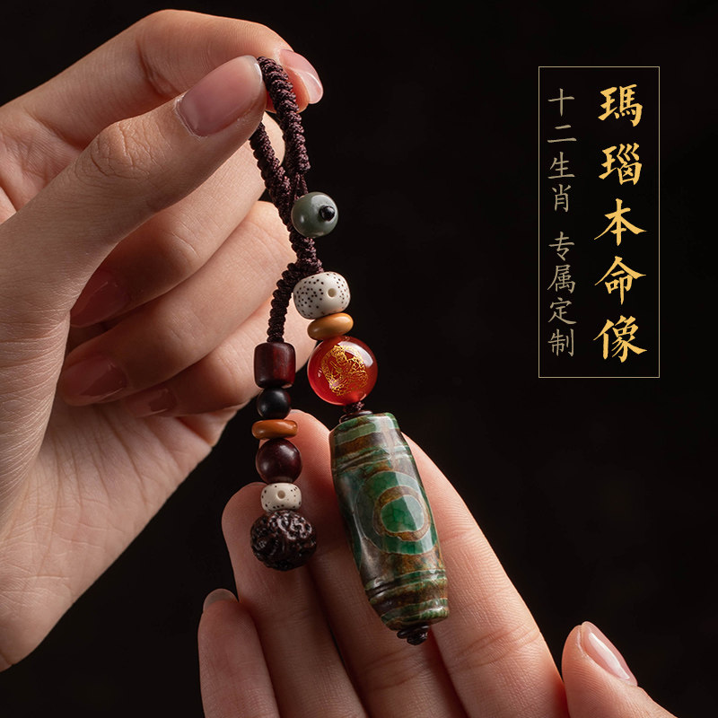 【店长设计】玛瑙三眼天珠十二生肖本命佛钥匙扣男汽车钥匙圈链女