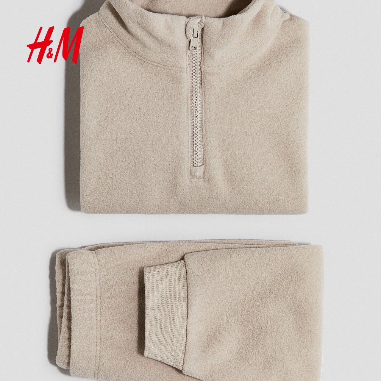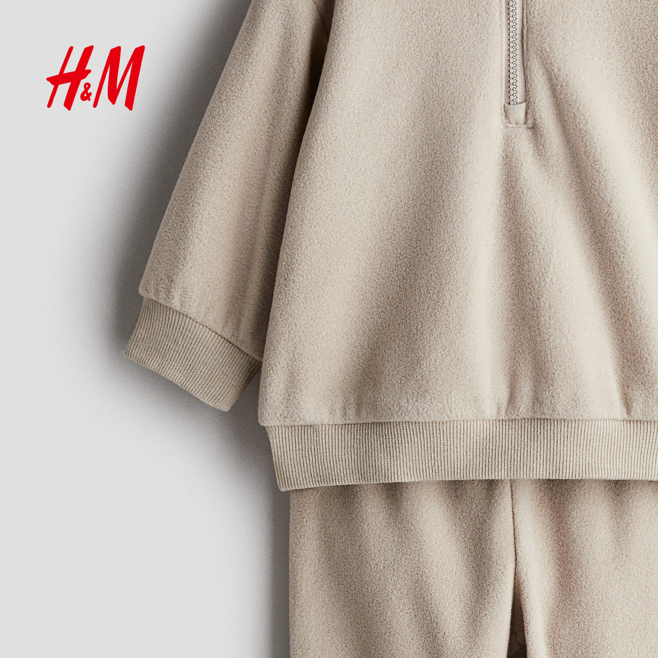 HM童装男婴女婴套装2件式2025冬季新款加绒保暖长袖长裤1190291