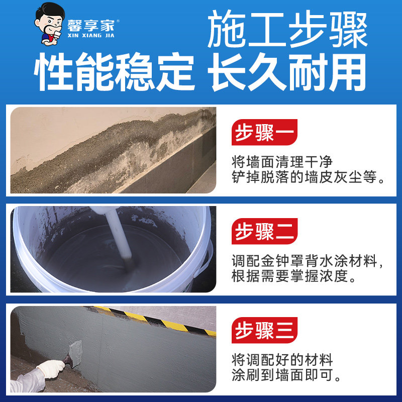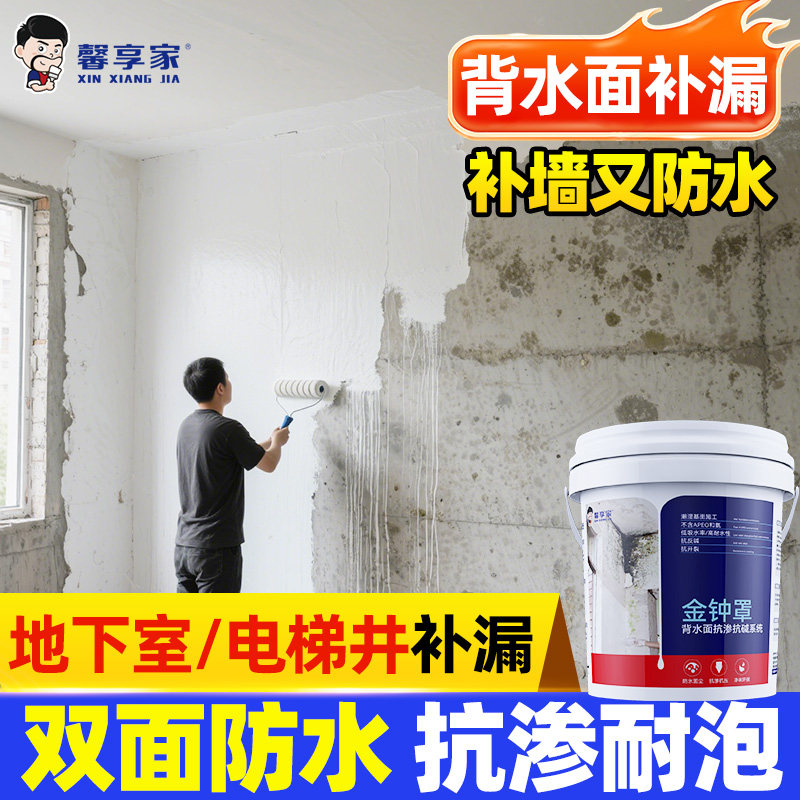 背水面防水涂料抗渗天花板漏水内墙面防潮防霉地下室负压补漏材料
