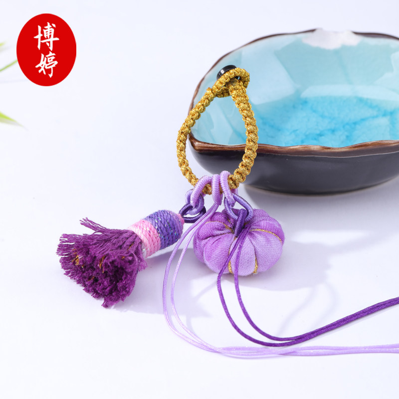 手搓棉线南瓜钥匙扣手编金刚结南瓜流苏穗挂件香包手机链配件挂绳