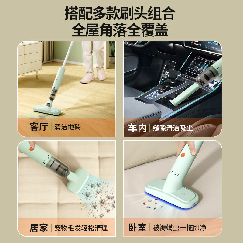 苏泊尔无线吸尘器家用大吸力绿光显尘手持清洁地毯猫毛宠物吸尘机