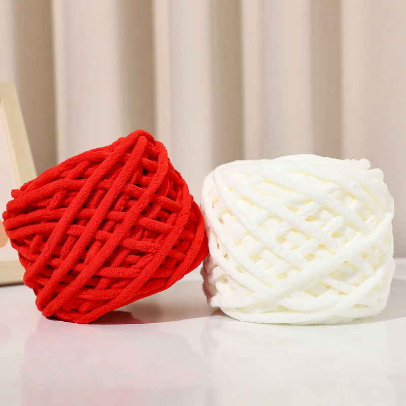 冰条线手工diy编织牛奶棉送女围巾粗毛线团棒针线拖鞋粗线红色