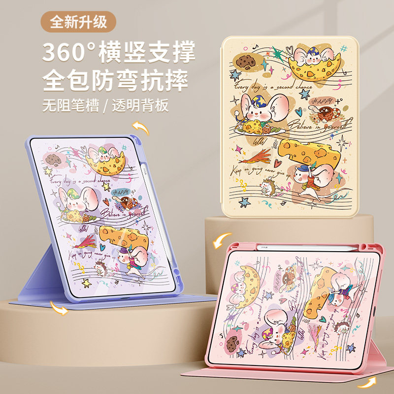 适用ipad11保护套2025新款iPad平板壳air7/6苹果iPad10/9/8带笔槽mini45代亚克力pro11全包a16电脑奶酪鼠2019