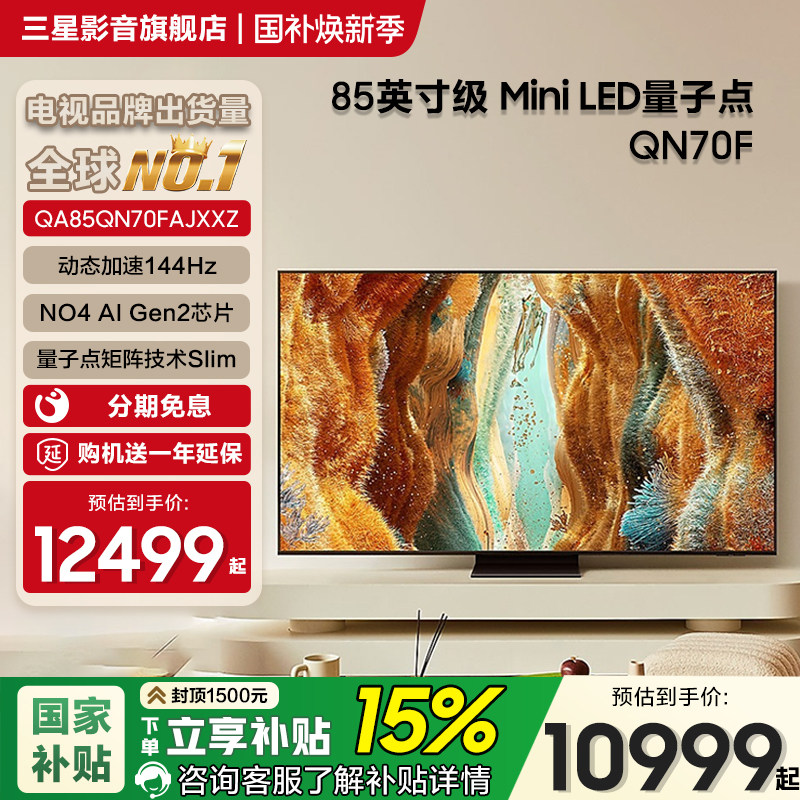 Samsung/三星QA85QN70FAJXXZ 85英寸4K量子点MiniLED电视机144Hz