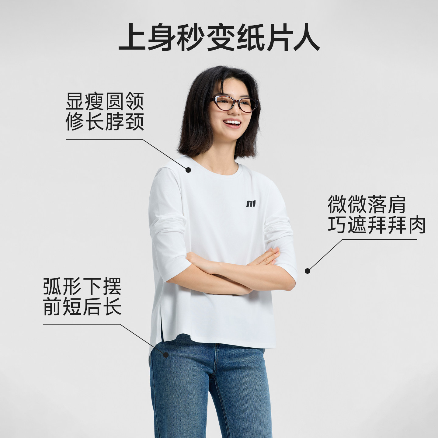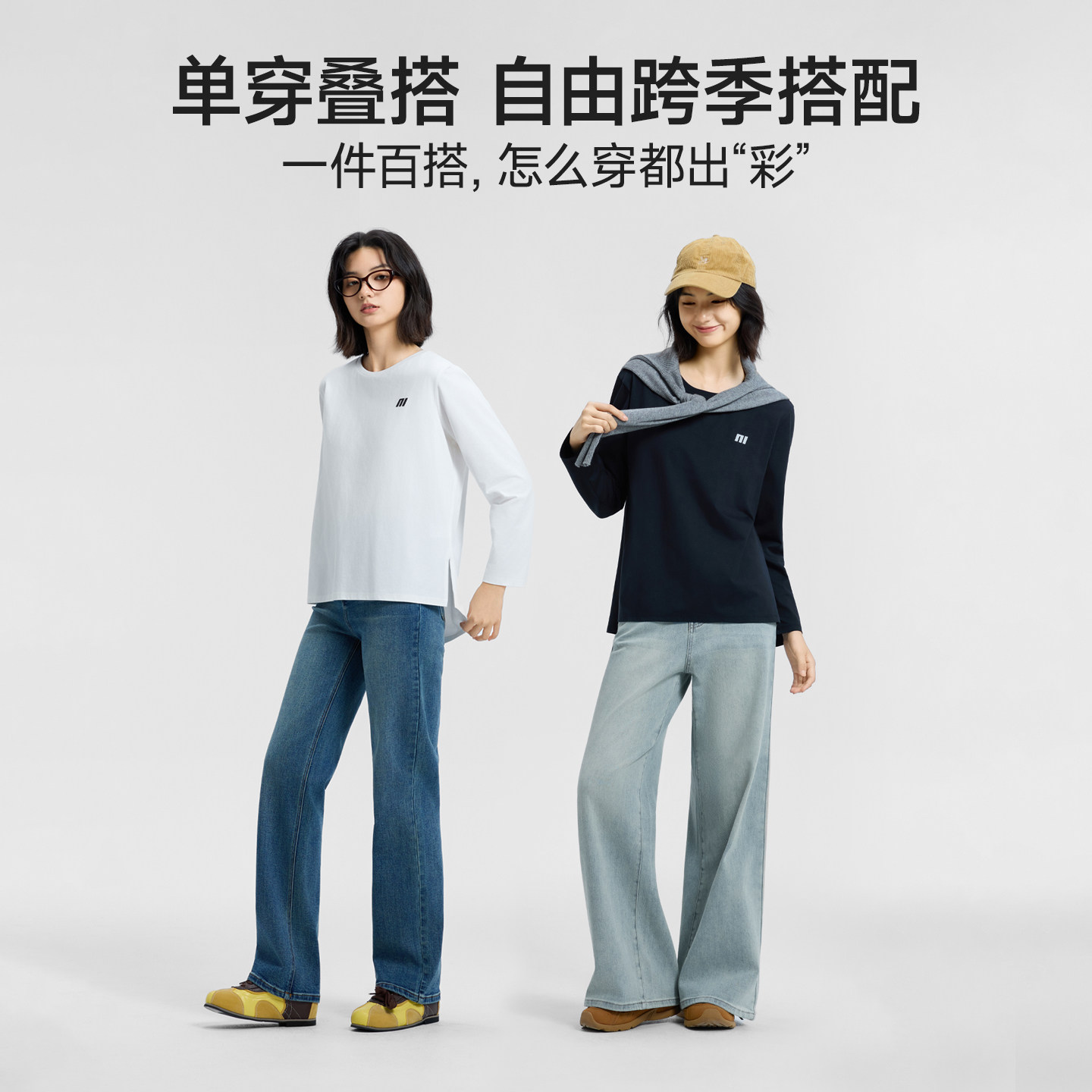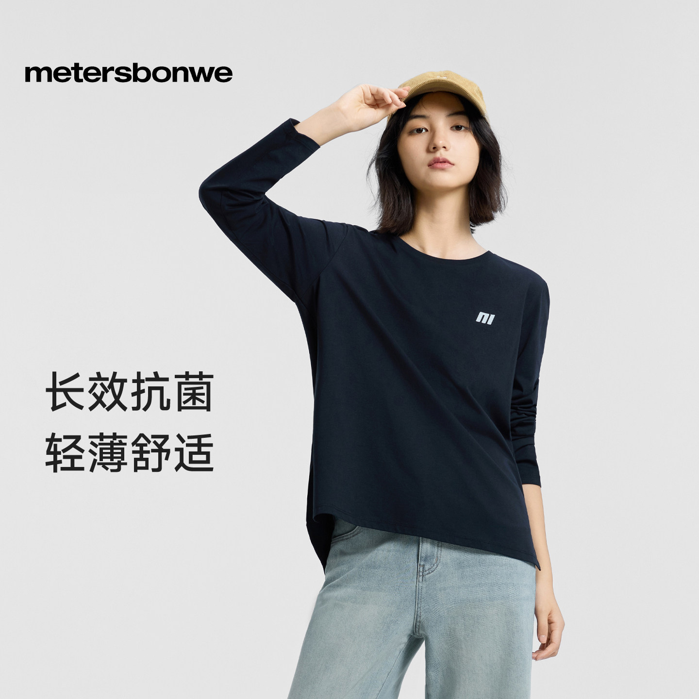 美特斯邦威T恤女士2025秋冬新款宽松印花字母长袖体恤打底衫上衣