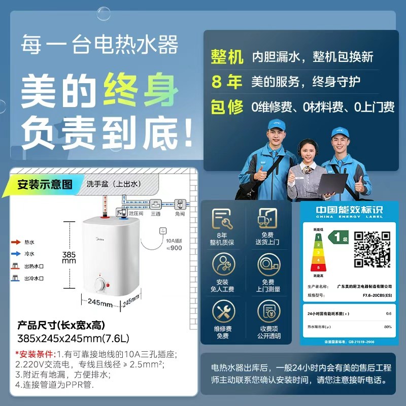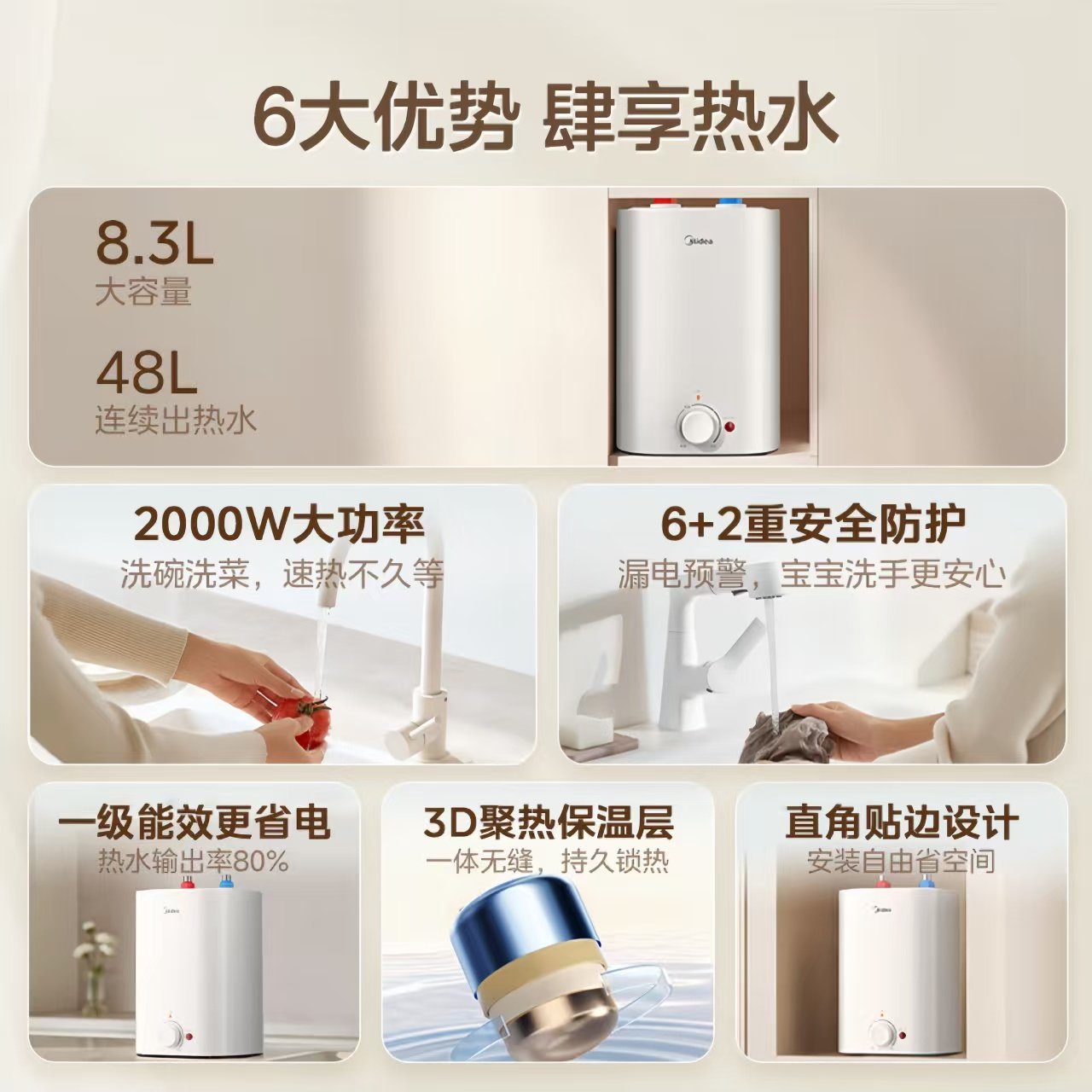 美的8.3L小厨宝热水器厨房家用台下储水式1级节能小型热水宝速热