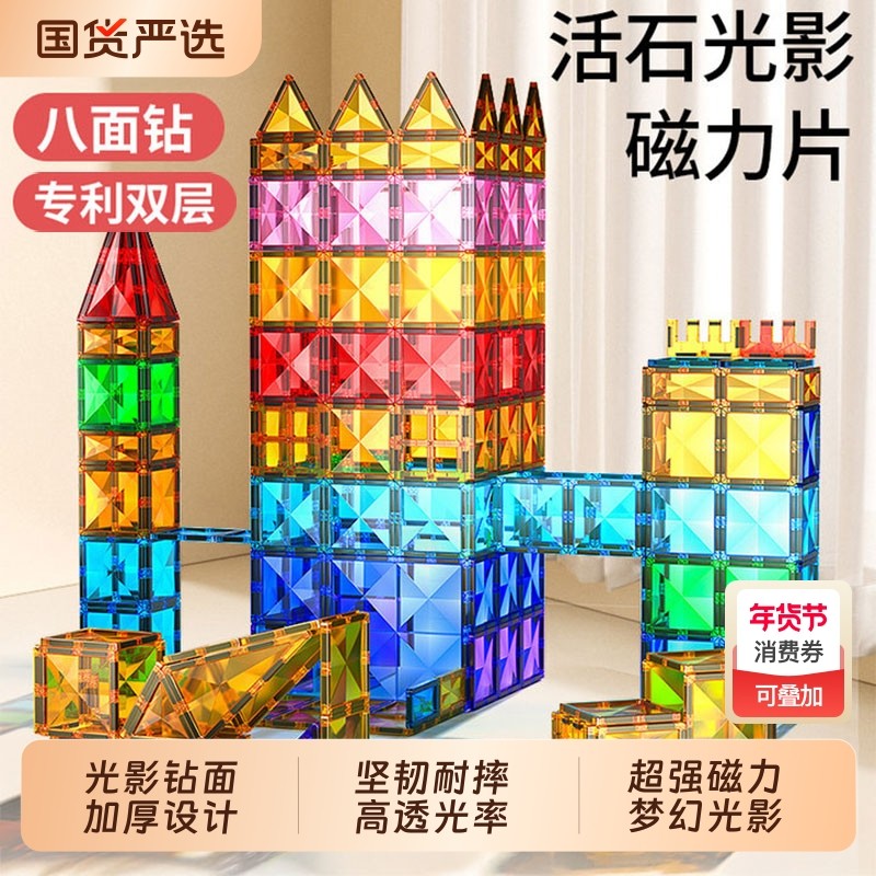 钻面彩窗磁力片儿童益智玩具拼装图积木男女孩强磁铁宝宝圣诞礼物