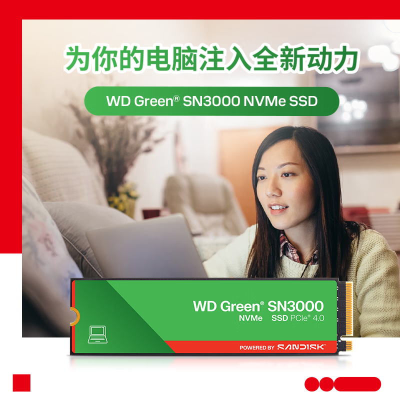 WD西部数据M.2固态硬盘SN3000 1T 2T笔记本tlc颗粒台式机电脑ssd