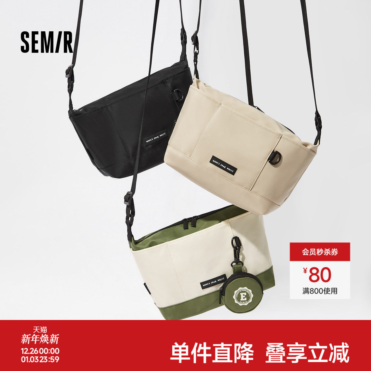 森马斜挎包男外出便携包时尚户外痛包情侣背包大容量饺子包字母潮