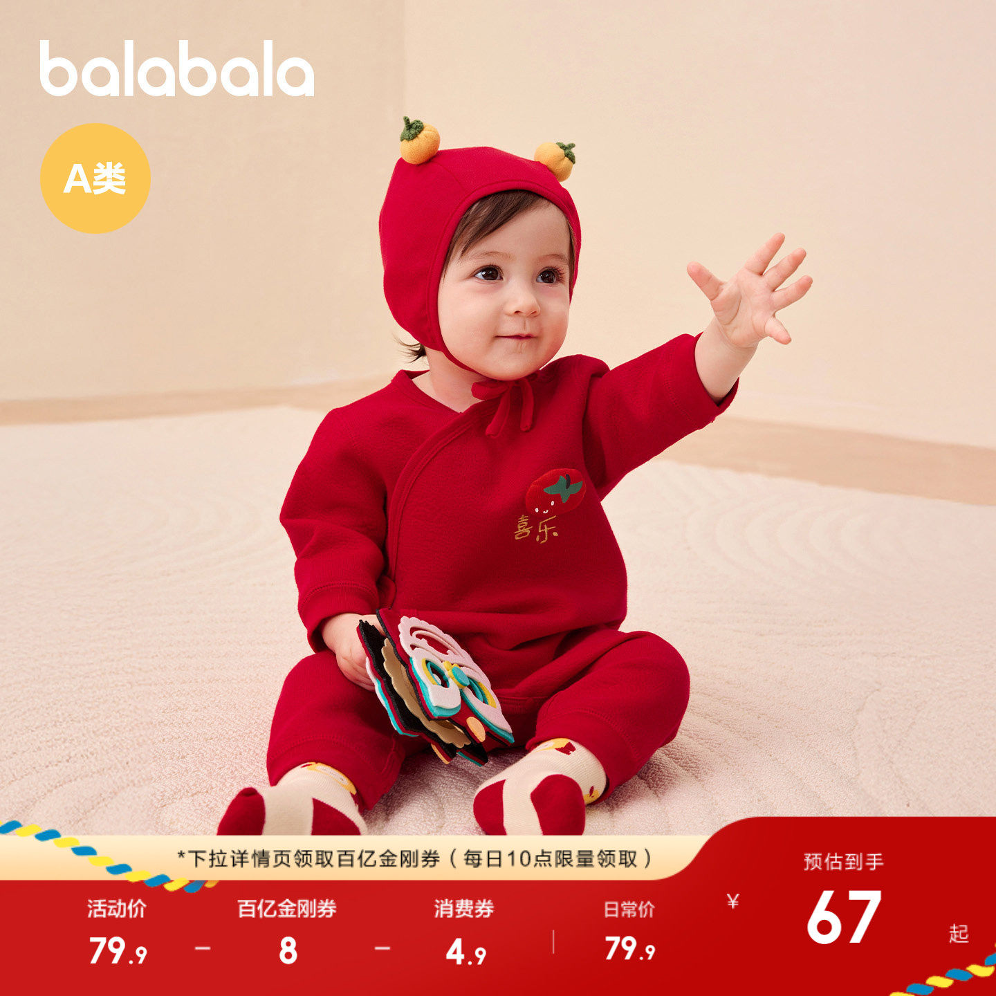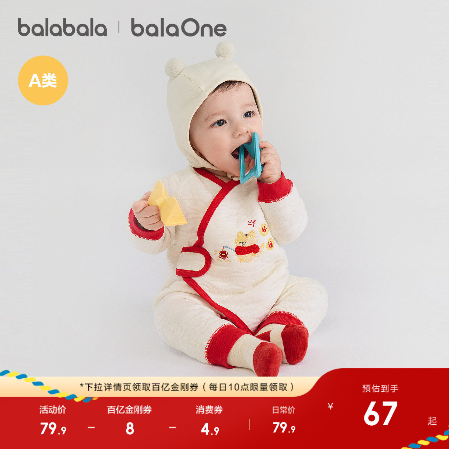 巴拉巴拉婴儿连体衣新生儿宝宝衣服满月爬服2025新款冬红色拜年服