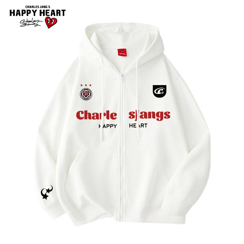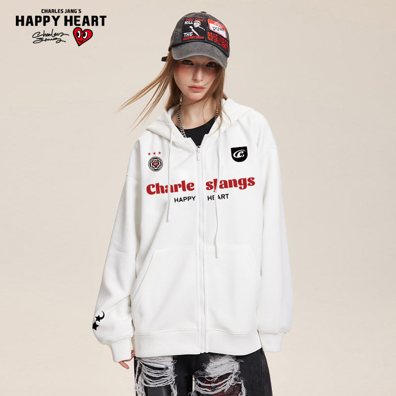 查尔斯桃心 开衫连帽卫衣男美式字母印花潮牌秋冬季百搭情侣外套