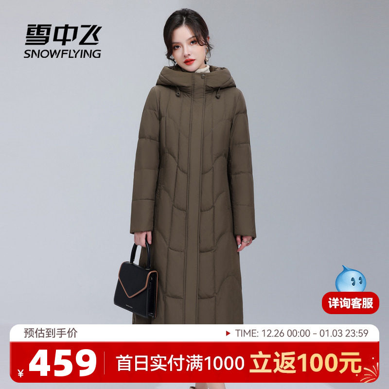 雪中飞2025冬新款羽绒服长款中年妈妈时尚休闲连帽保暖气质