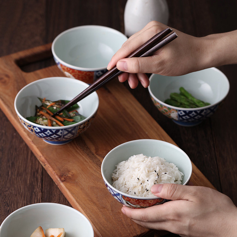 美浓烧日本手工复古日式宫廷风彩瓷饭碗家用餐具陶瓷4.5英寸饭碗