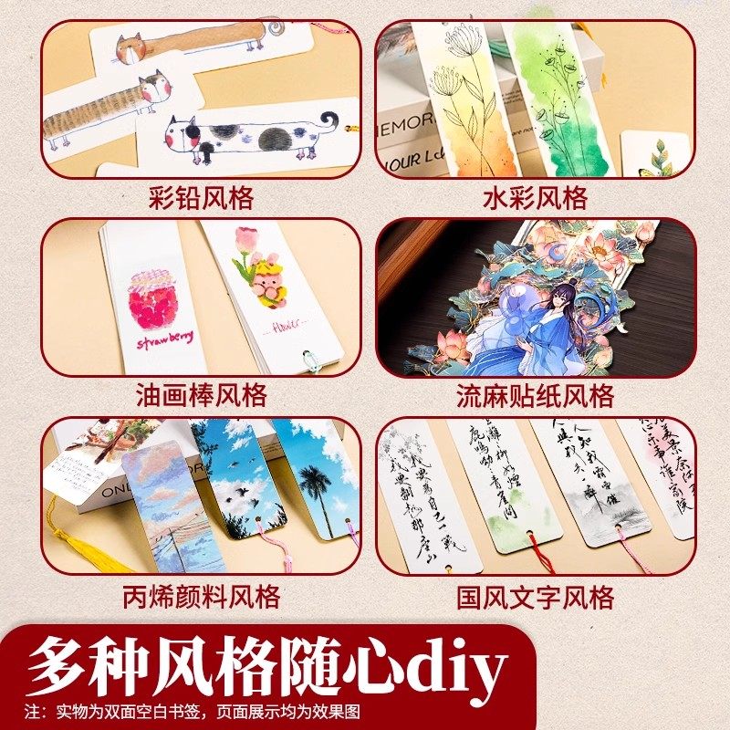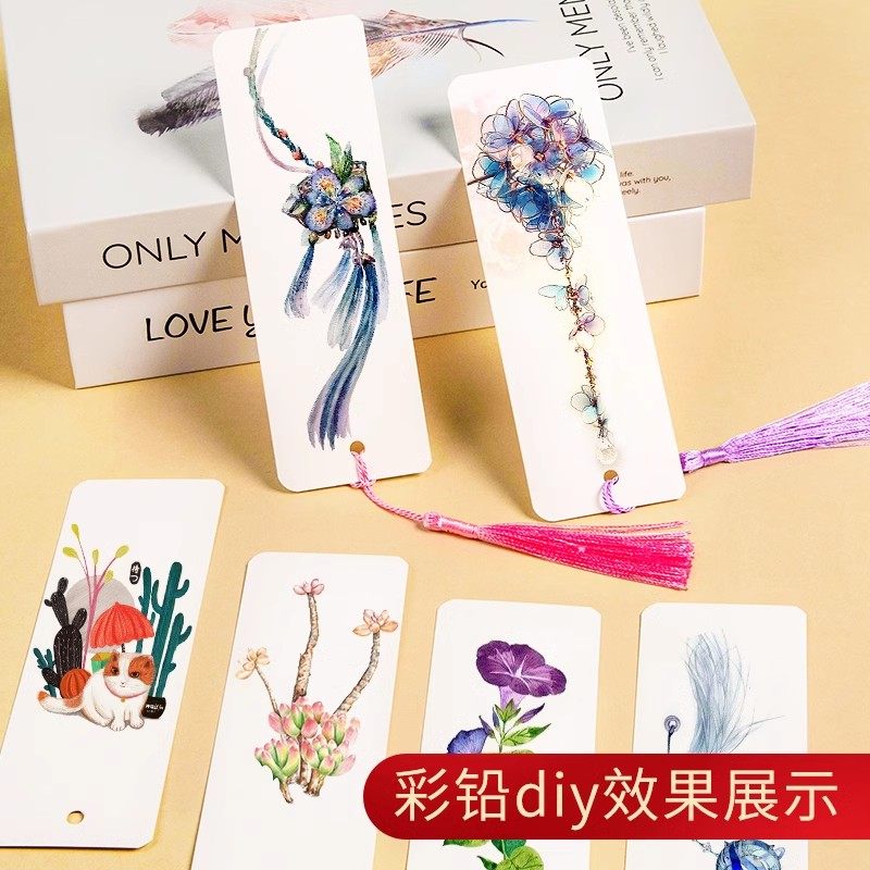 空白书签自写纸质手写制作材料包diy手工干花书签卡片流苏学生