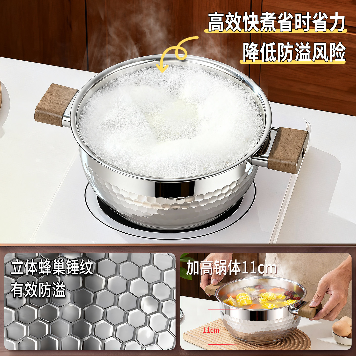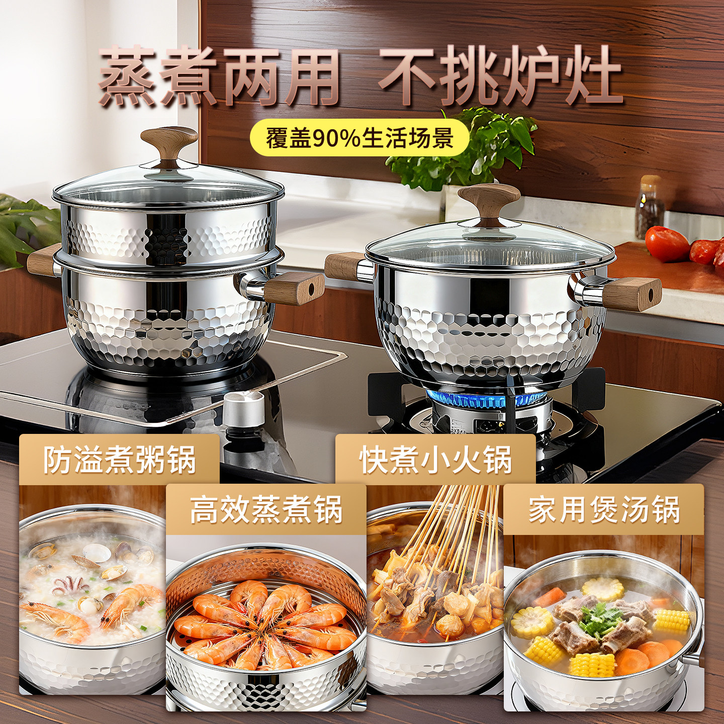 316不锈钢汤锅家用电磁炉304双耳雪平锅蒸煮锅加厚防溢煲汤锅炖锅