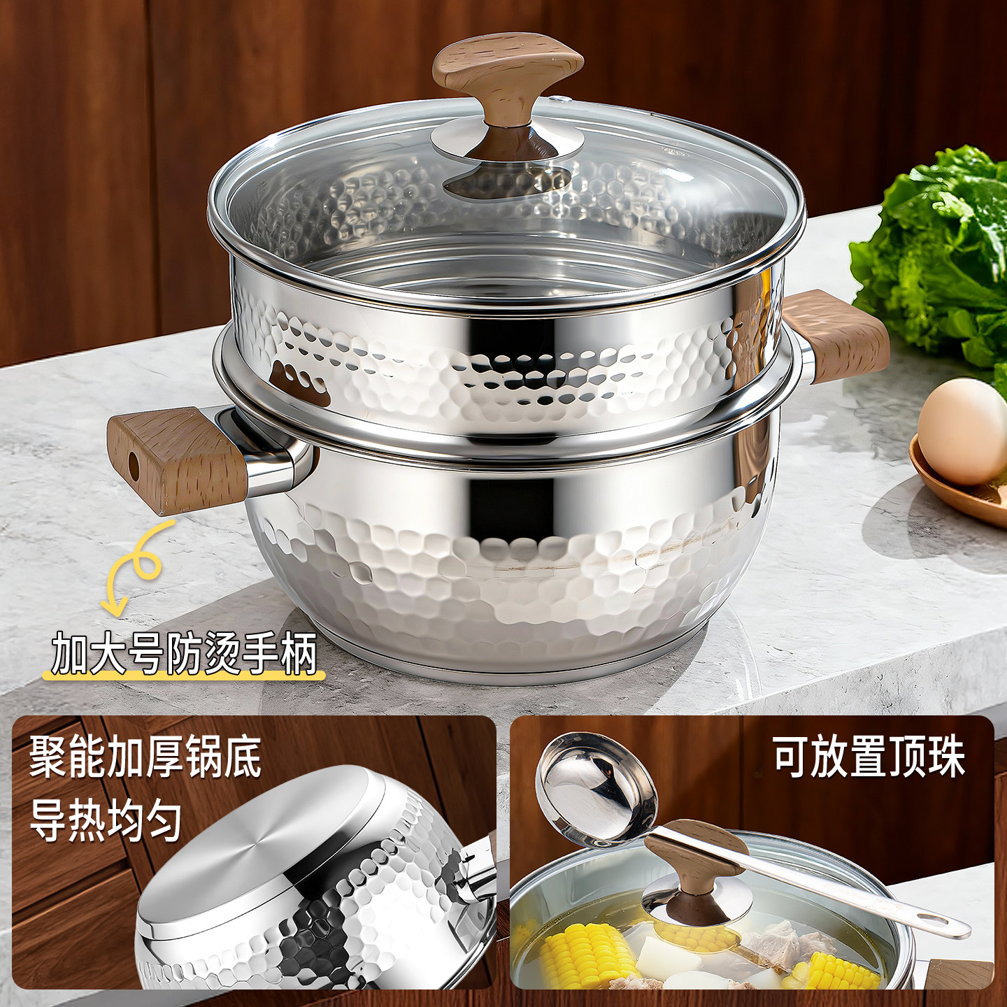 健康0涂层 五层加厚锅身 加大容量上蒸下煮
