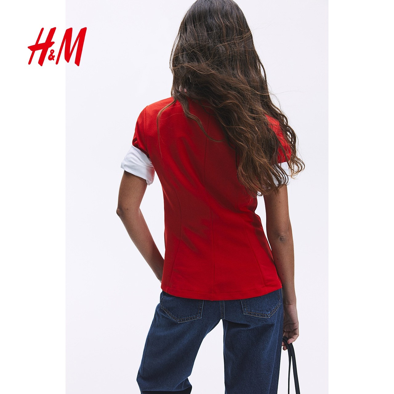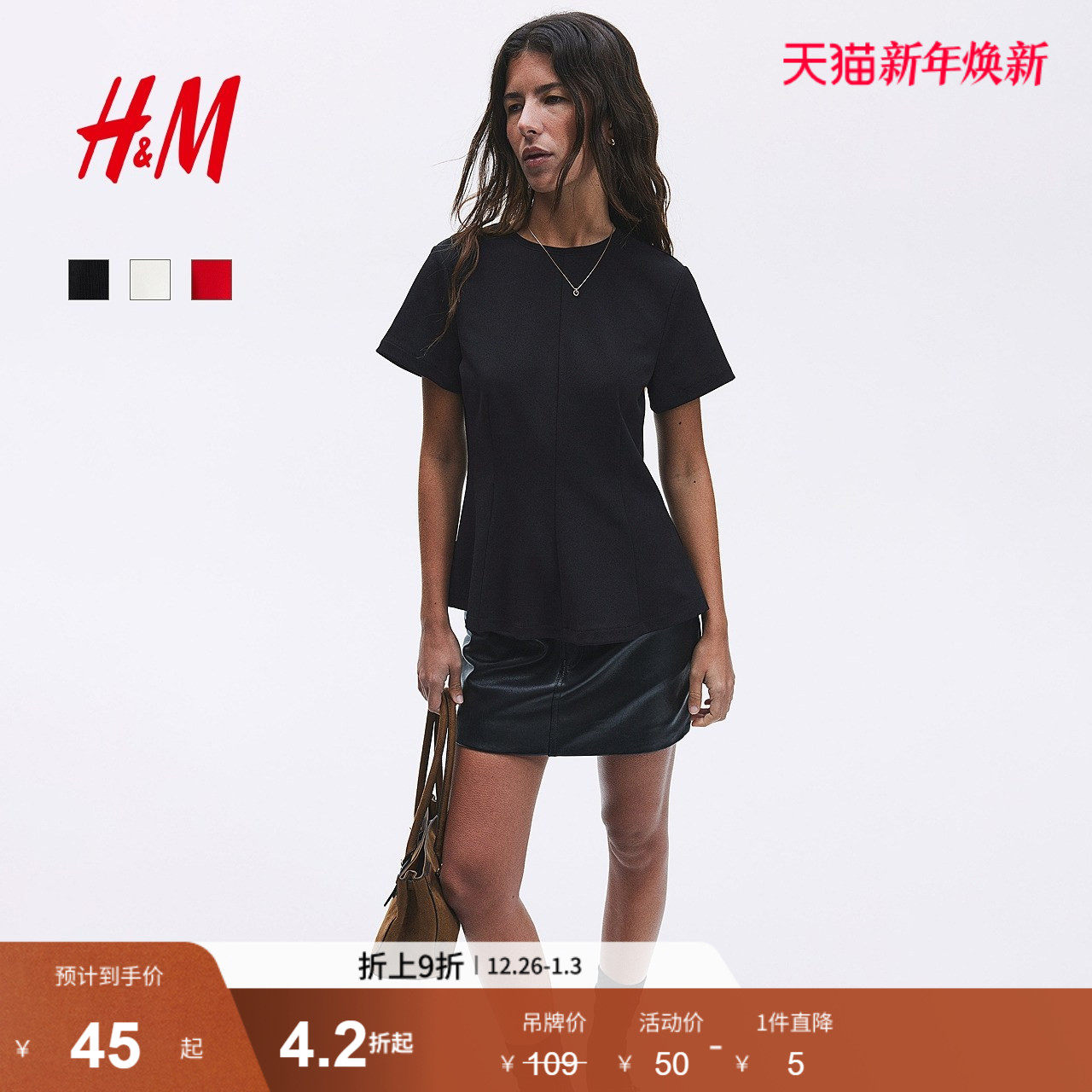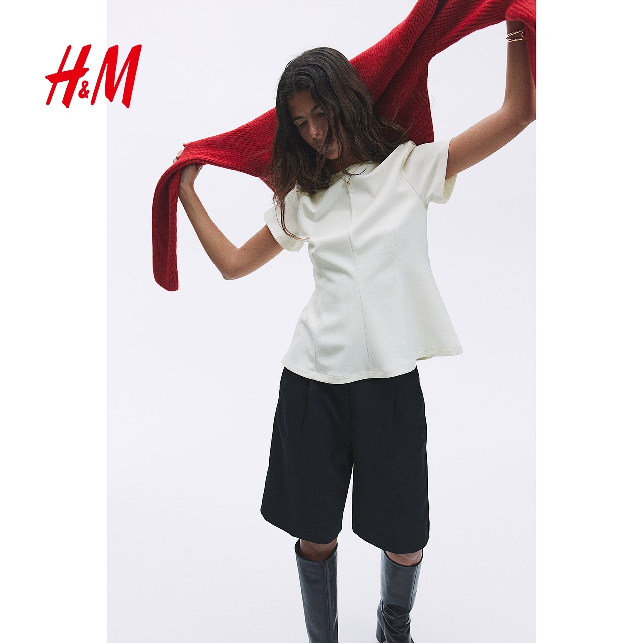 HM女装2025年秋季新款圆领短袖汗布修身收腰上衣1277321