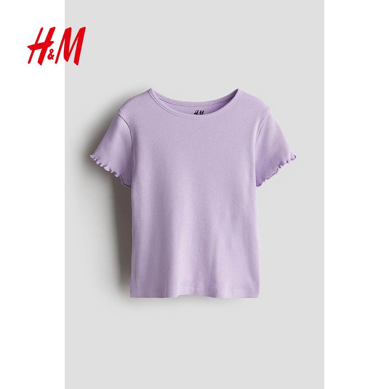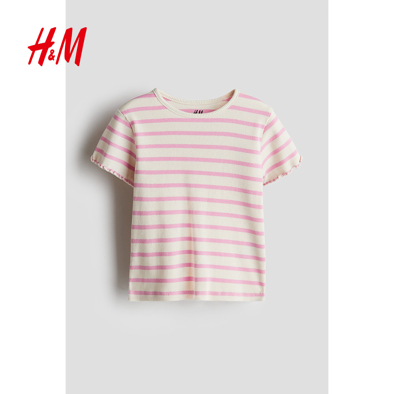 HM童装儿童女童T恤2025新款休闲柔软圆领短袖罗纹汗布上衣1218038