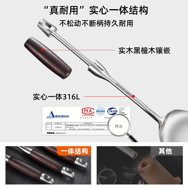德国食品级316不锈钢锅铲汤勺漏勺家用厨具炒勺套装炒菜耐用十快