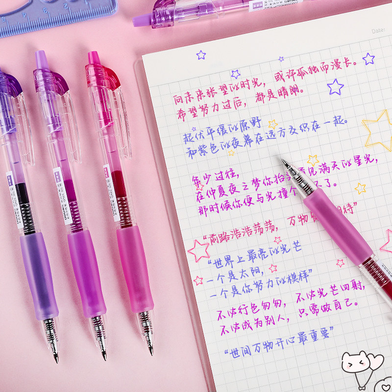得力紫色中性笔按动速干学生做笔记划重点手账笔标记笔记笔记荧光笔高颜值ins日系糖果色小清新绘画涂鸦水笔