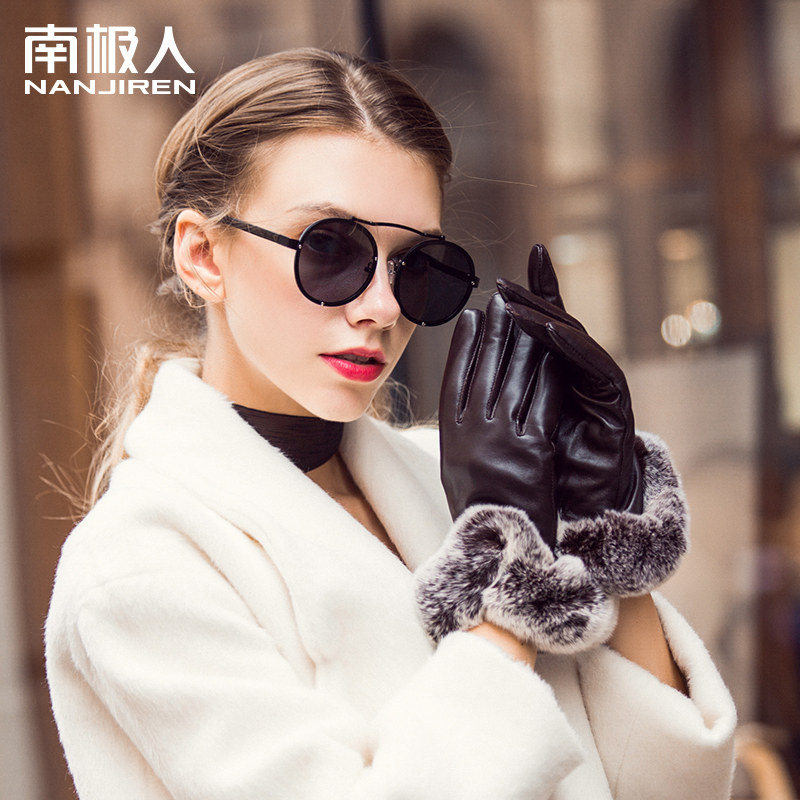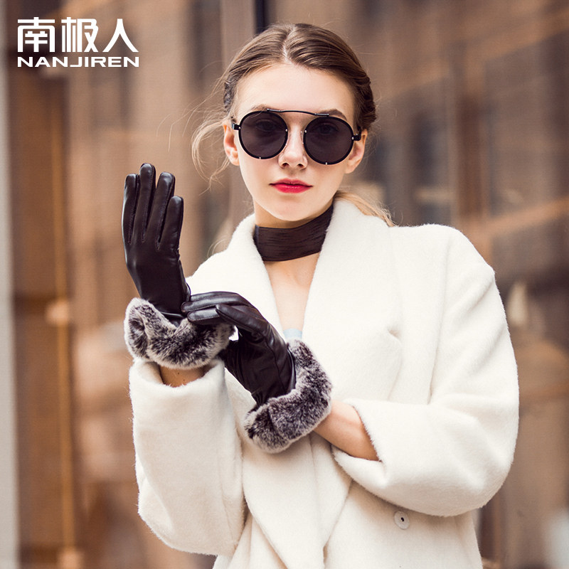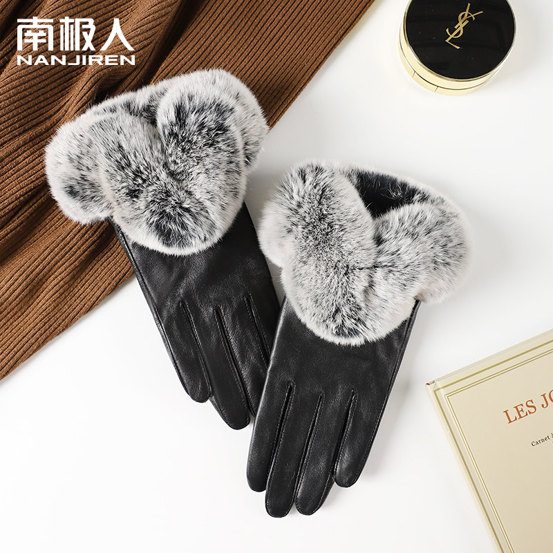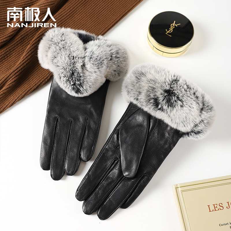 南极人皮手套女冬季保暖加绒加厚防寒风防水PU开车骑行手套毛绒A