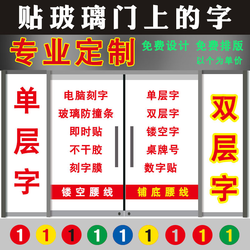 定制广告字贴纸电脑刻字不干胶即时自粘店铺玻璃门腰线文字防撞条汽车车身广告贴字橱窗贴纸数字贴自粘