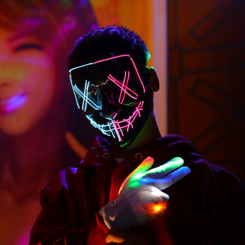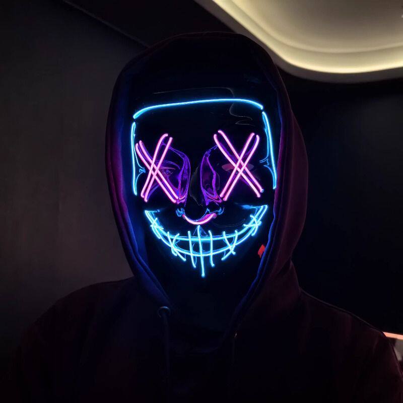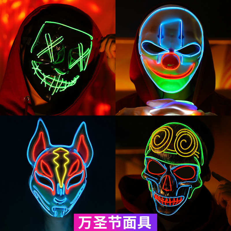 万圣节LED发光面具小丑V字剧本杀狼人杀鬼脸全脸恐怖舞会儿童男女