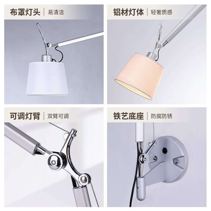 酒店工程款工业风机械臂可调节摇臂灯卧室床头客厅楼梯高级感壁灯