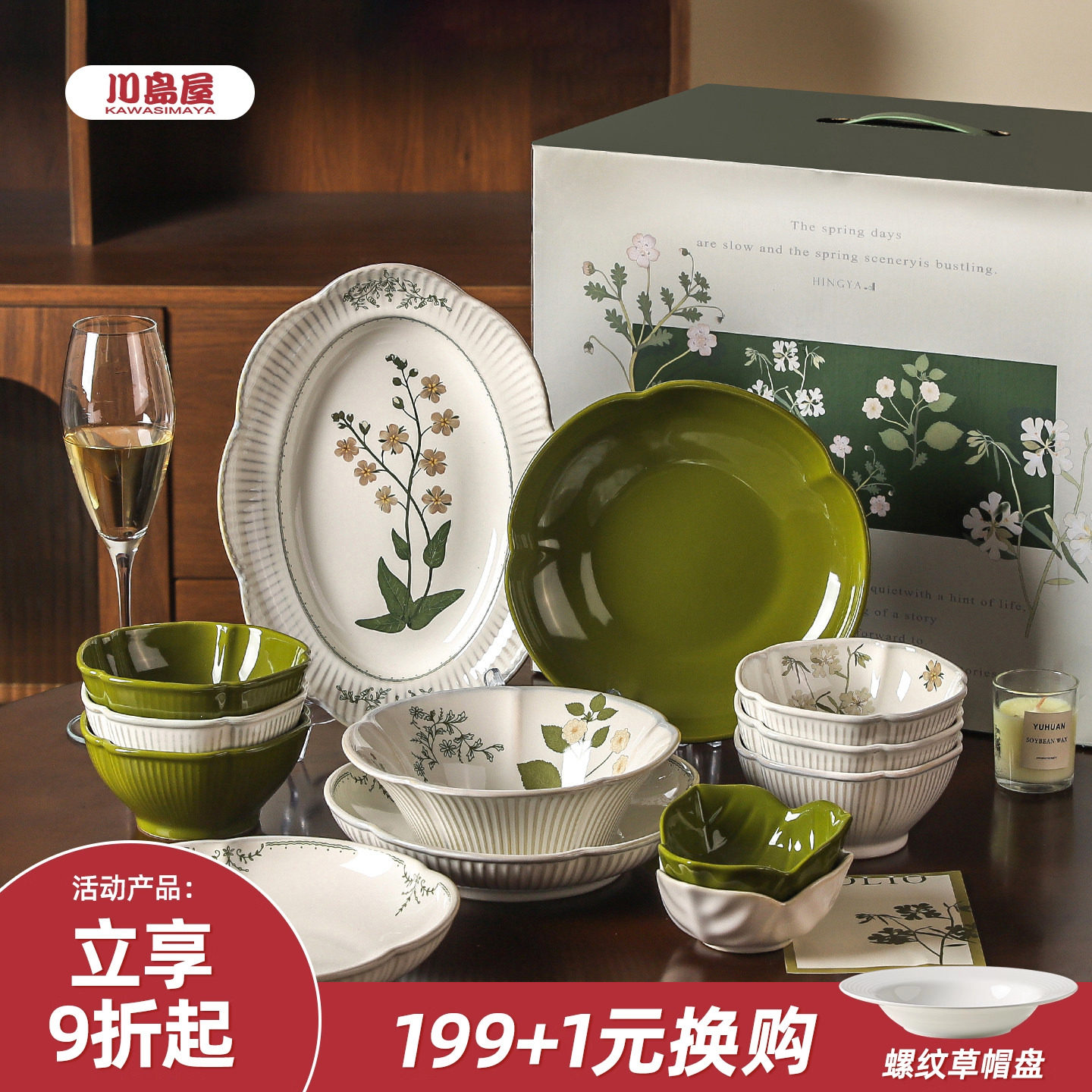 川岛屋法式清新餐具套装家用碗盘筷碗具碗碟礼盒新婚乔迁新居礼物