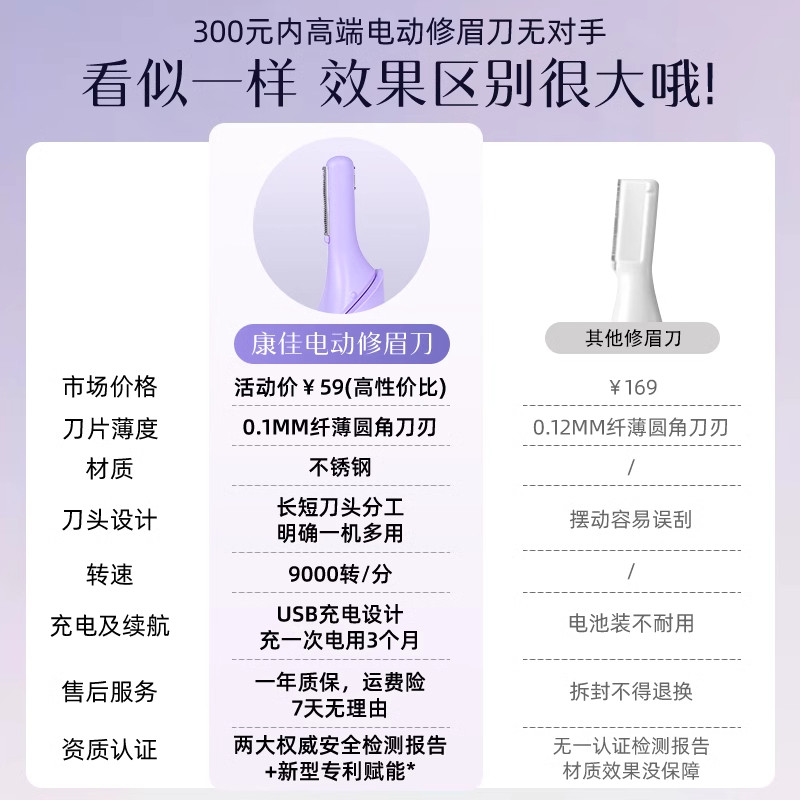 康佳电动修眉刀剃眉笔修剪神器旗舰男女士专用刮眉仪安全鬓角化妆