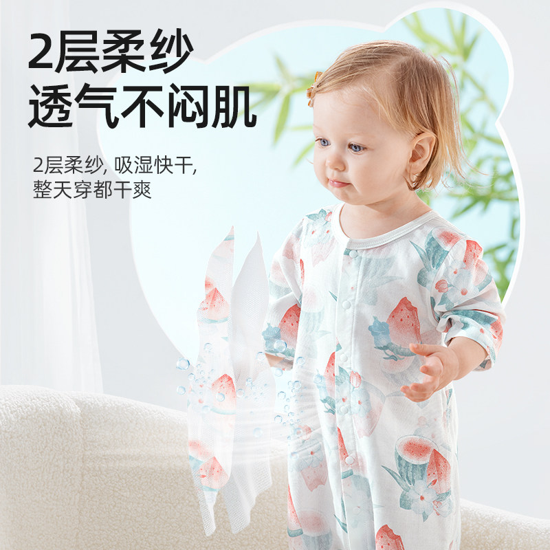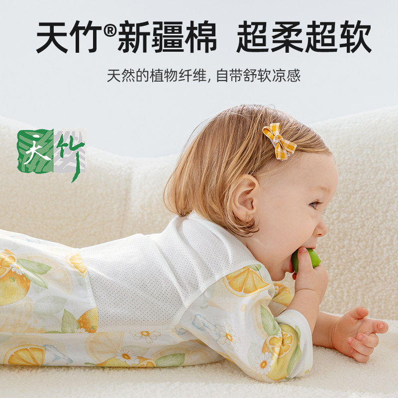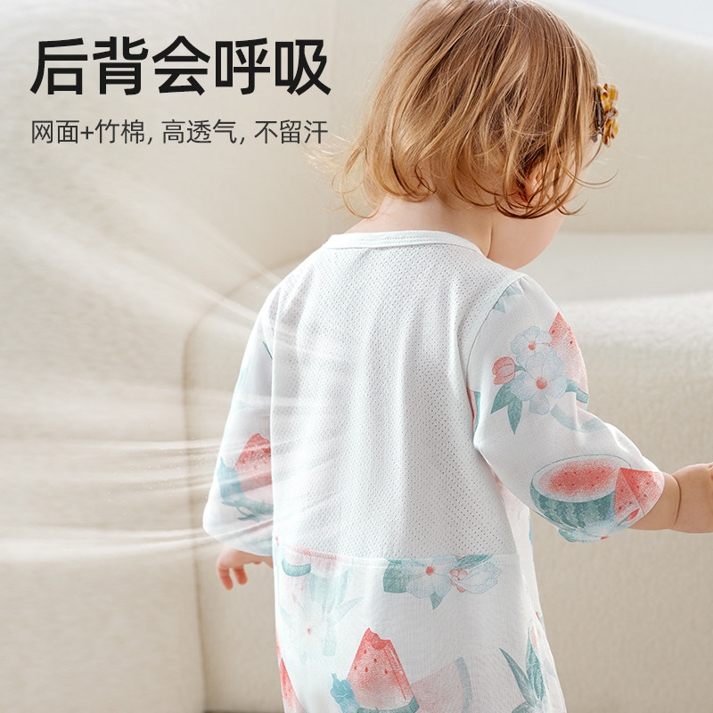 贝肽斯婴儿衣服夏季薄款连体衣宝宝后背网孔透气七分袖空调服睡衣