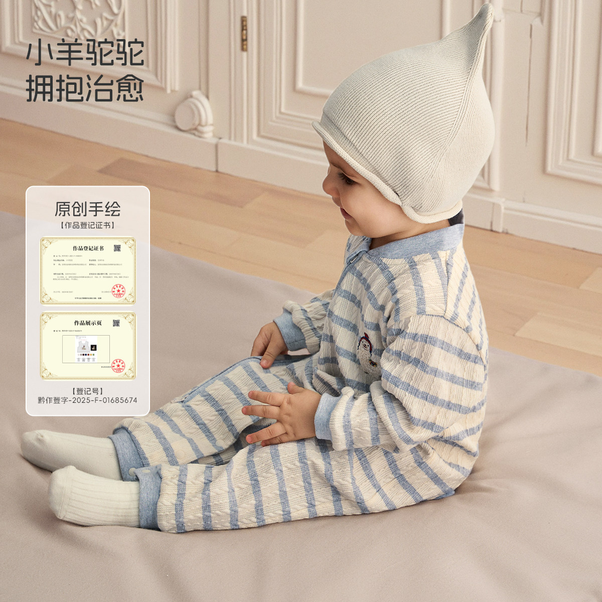 [小羊驼驼]aqpa爱帕婴儿连体衣拉链哈衣秋冬保暖宝宝衣服睡衣可爱