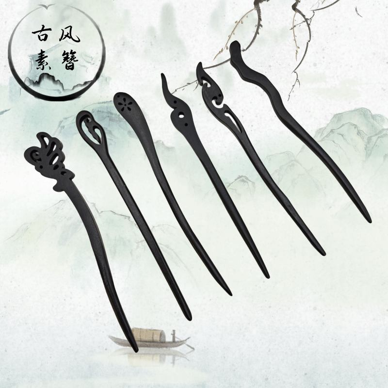 木质古风发簪素簪日常简约盘发簪子中式旗袍发钗汉服现代头饰