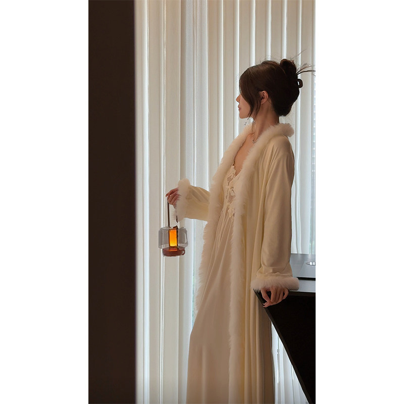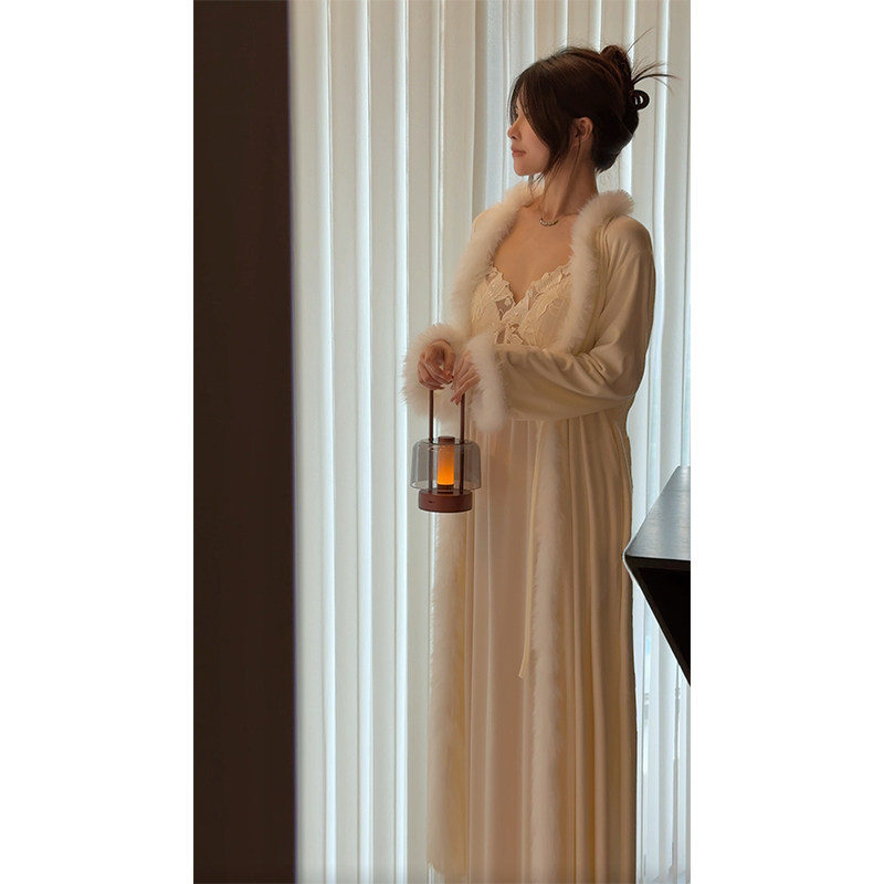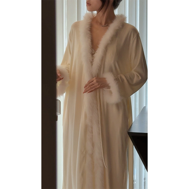 【初雪之森】秋冬毛毛睡袍法式长裙长袍睡裙女显瘦高级保暖