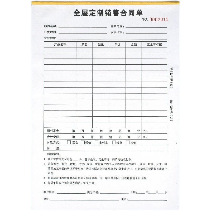 家装装修全屋定制销售合同家具橱柜订单开单本整体衣柜定做接单本