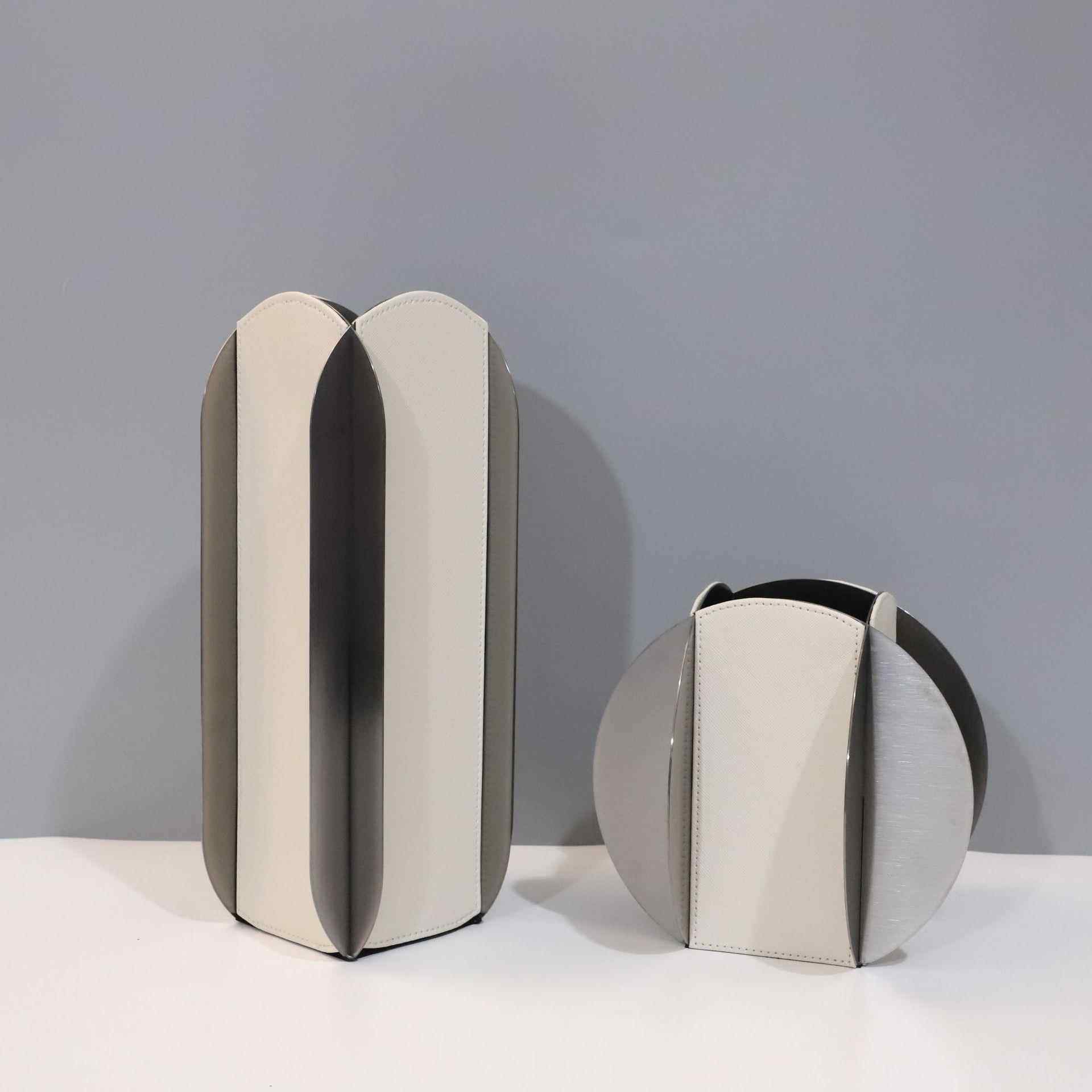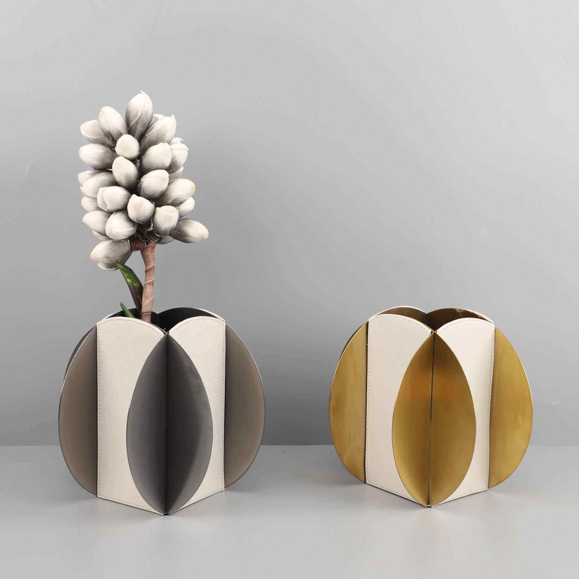 新中式创意艺术金属皮革花器摆件样板房酒店家居客厅创意软装饰品