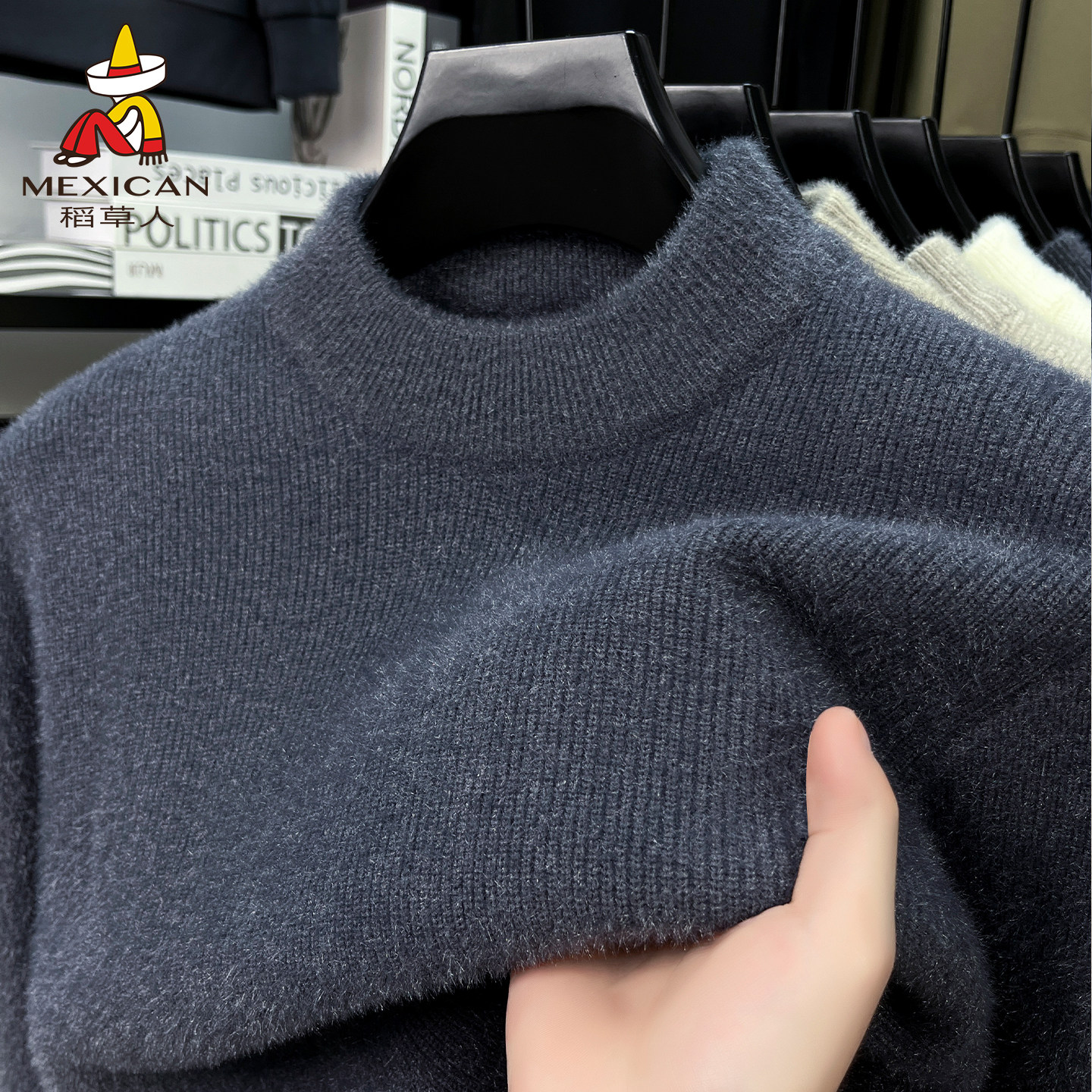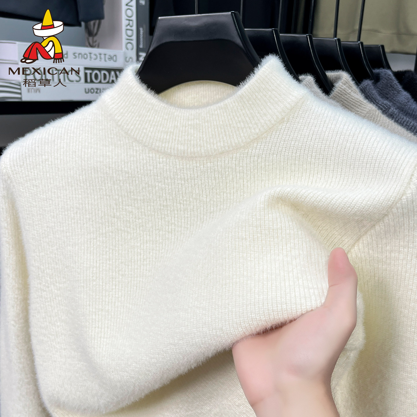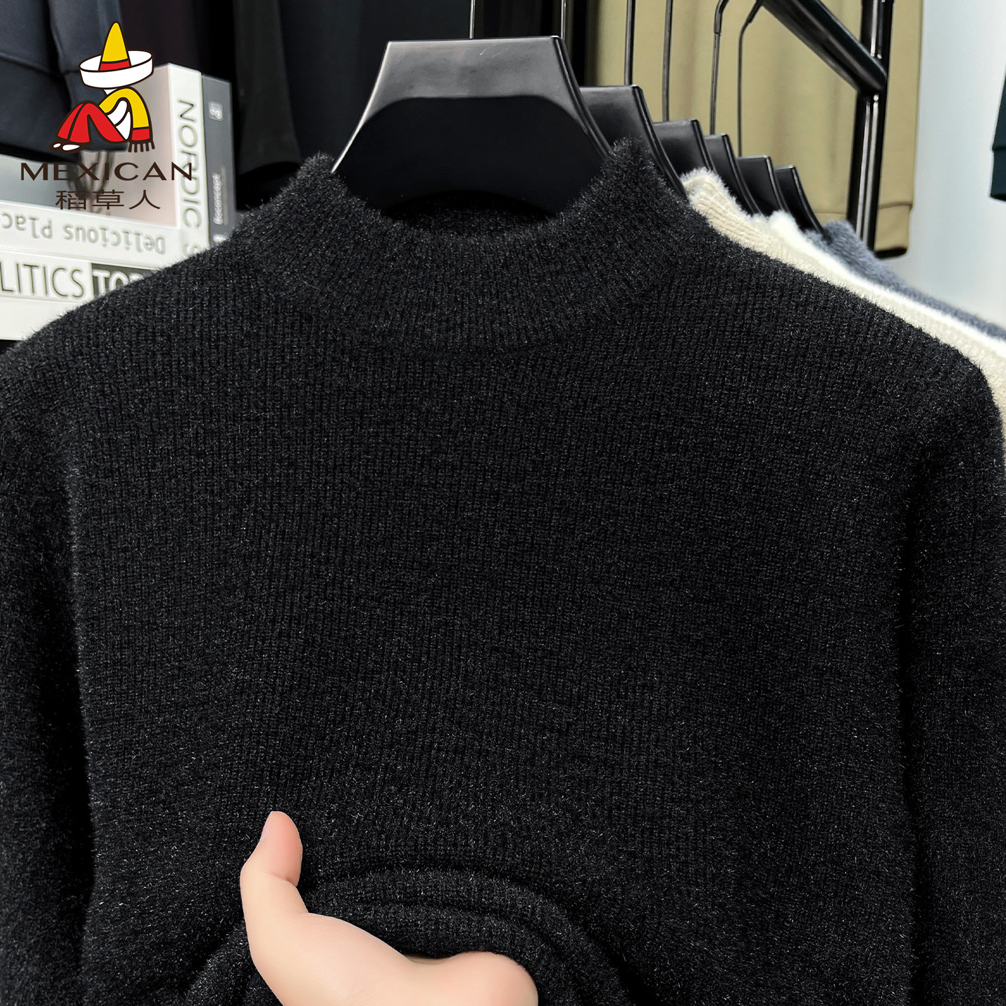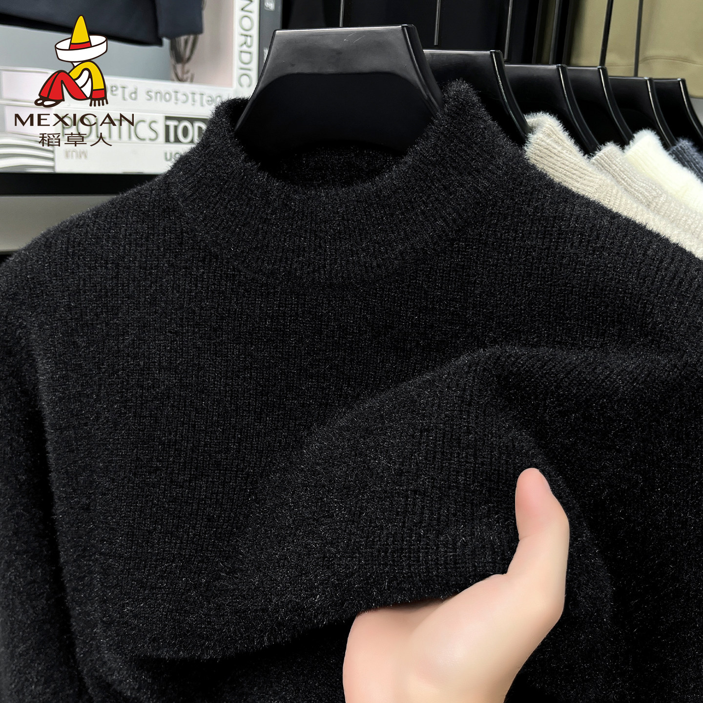 稻草人半高领毛衣冬季新款加绒加厚保暖上衣休闲雪貂针织打底衫J