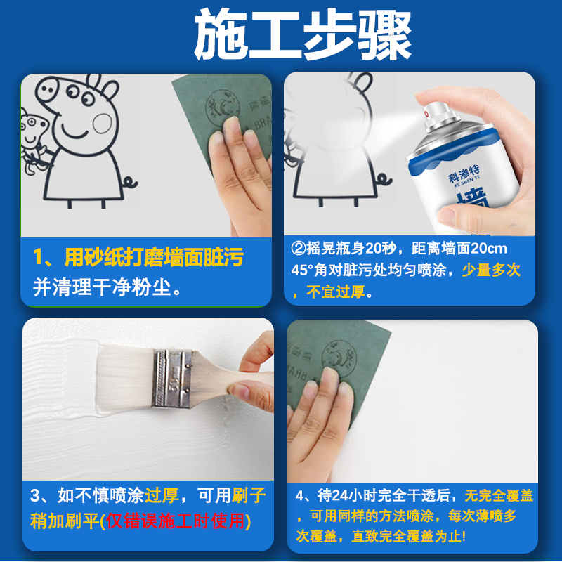 墙面自喷漆乳胶漆室内家用白色墙壁修复去污油漆自刷涂料修补墙膏