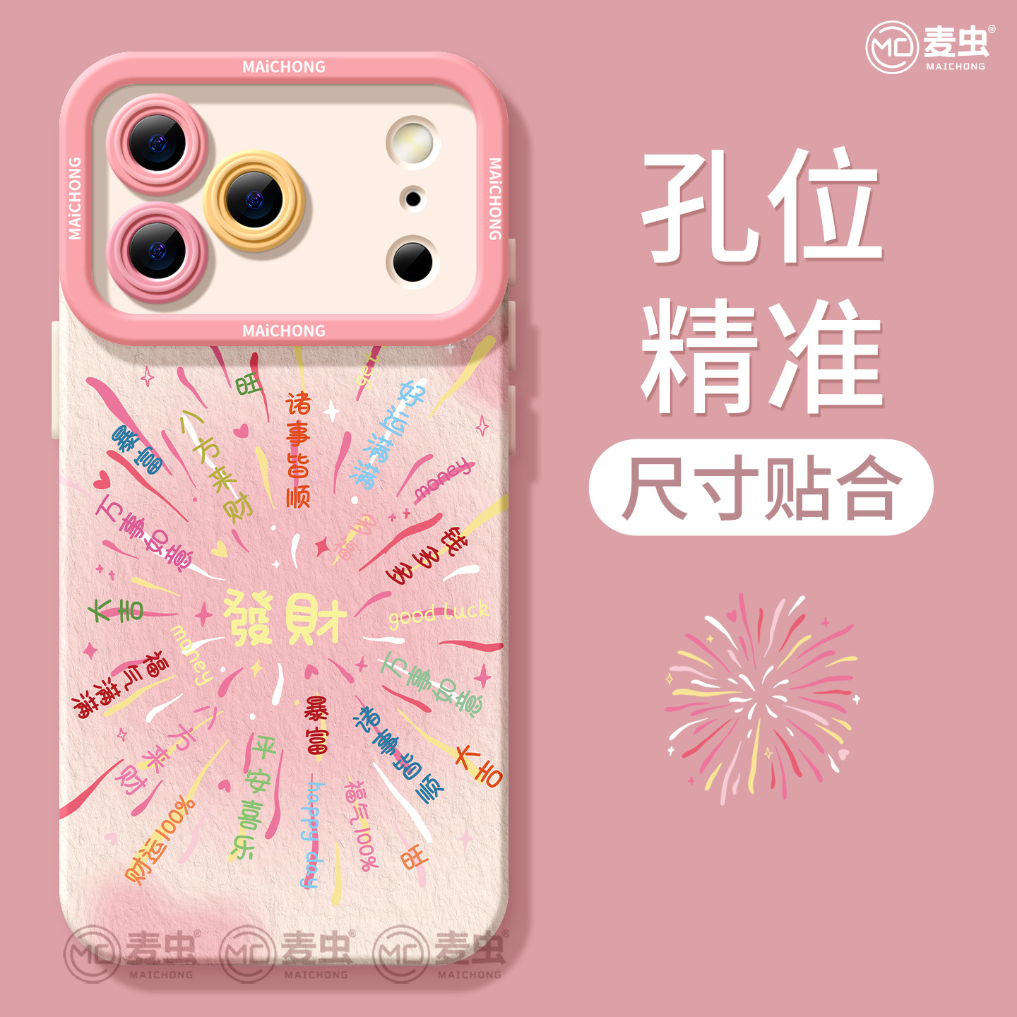 麦虫适用iphone17promax手机壳苹果17新款17air斜跨15硅胶13全包12防摔pm高级感11烟花14带挂绳16promax软套