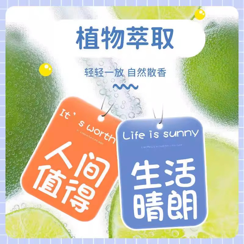 新款元气满满车载香薰吊牌香卡香片纸质方形车内香味车挂件