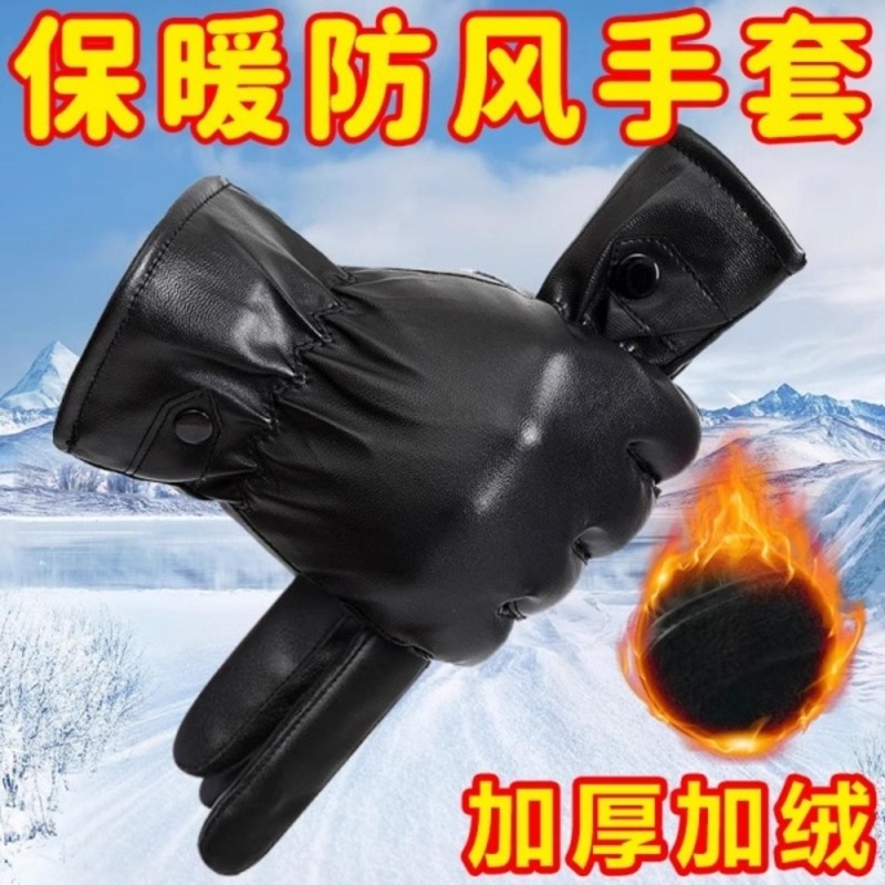 冬季保暖手套加厚加绒防风PU皮电动车骑行女士羊皮骑车防水摩托车