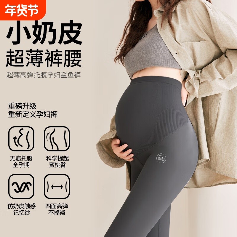 十月结晶孕妇打底裤子小个子瑜伽裸感不勒肚子鲨鱼裤秋冬季款外穿