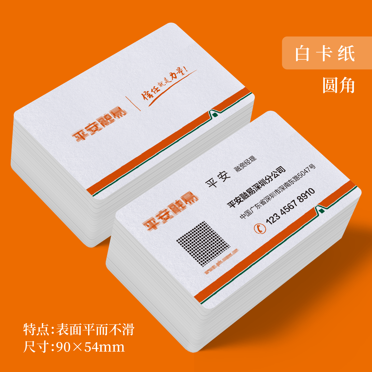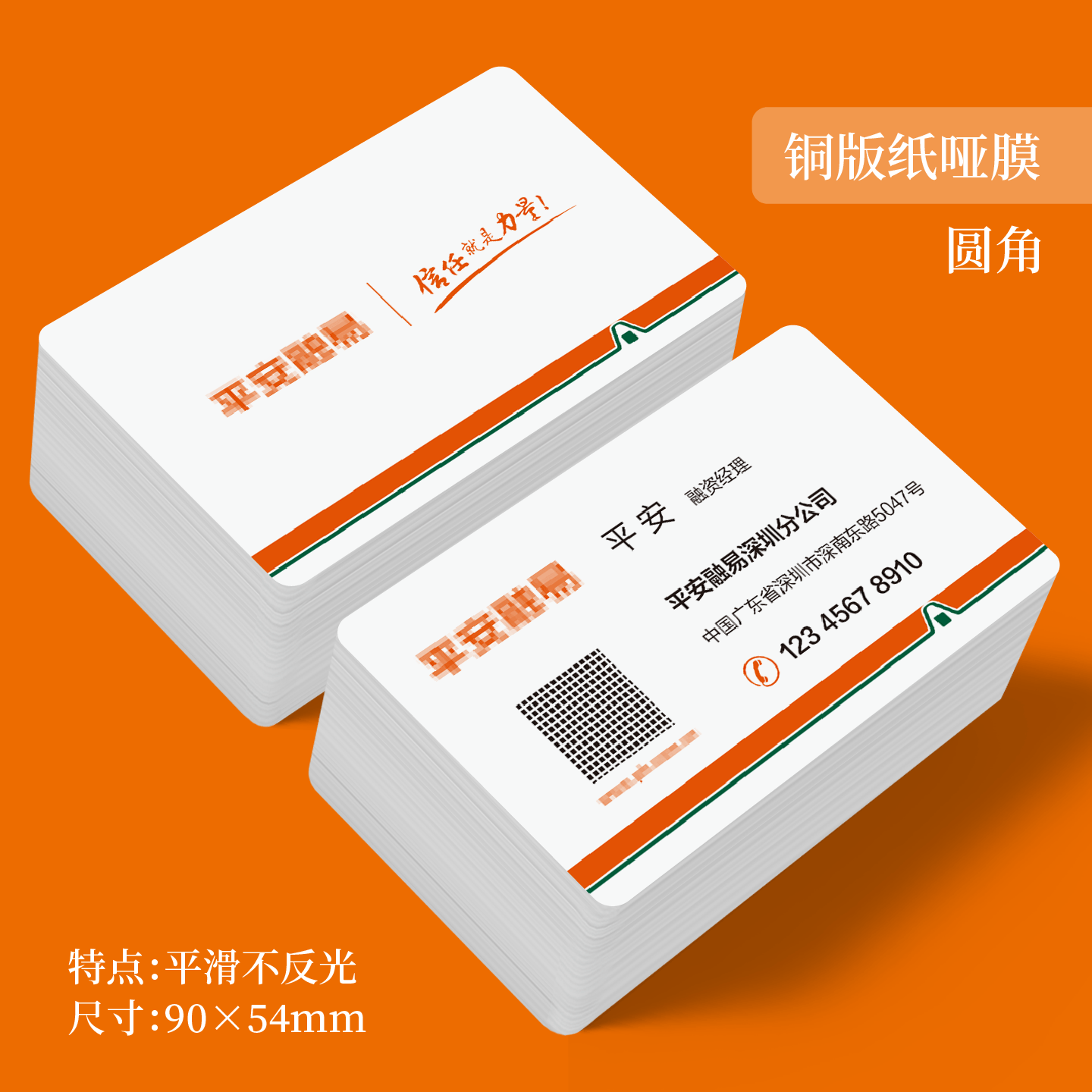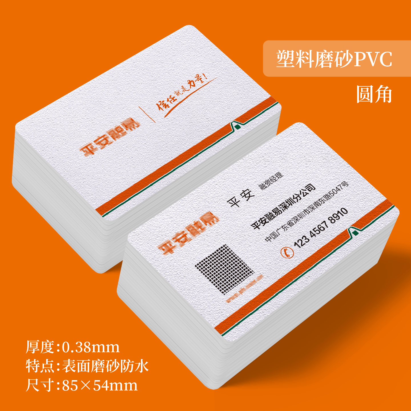 平安融易名片印刷制作设计打印定制覆膜防水塑料磨砂圆角珠光商务